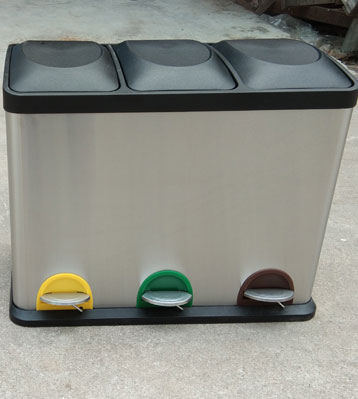 不銹鋼室內(nèi)三分類腳踏垃圾箱