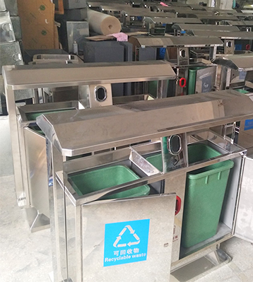 小區(qū)常用兩分類不銹鋼垃圾箱核心部件模壓成型不脫焊不易破損堅固耐用。全桶身不銹鋼制作的垃圾箱還具有防火功能,金屬亮澤,高雅美觀,應(yīng)用范圍廣;內(nèi)外表面光潔,減少垃圾殘留,易于清潔;可根據(jù)客戶需求選配鍍鋅內(nèi)桶或玻璃鋼內(nèi)桶。