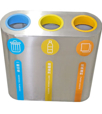 三合一不銹鋼垃圾箱核心部件可模壓成型不脫焊不易破損堅(jiān)固耐用。全桶身不銹鋼制作的垃圾箱還具有防火功能,三合一于一體,搭配三色噴塑投口和與之對(duì)應(yīng)的箱體垃圾分類(lèi)標(biāo)識(shí)及文字說(shuō)明,清晰醒目辨識(shí)度高有利從源頭規(guī)范可回收物、其他垃圾、有害垃圾常規(guī)的三分類(lèi)垃圾投放,還可做商場(chǎng)、地鐵站一般垃圾、瓶罐廢料、紙類(lèi)廢料等分類(lèi)垃圾收集使用;斜面投口款式新穎突顯個(gè)性,焊點(diǎn)平整光滑整體高雅美觀,無(wú)利口不傷手;可根據(jù)客戶需求選配鍍鋅內(nèi)桶或玻璃鋼內(nèi)桶。