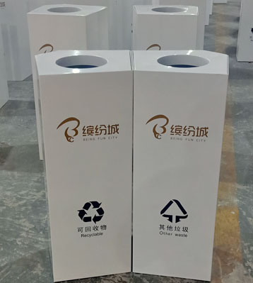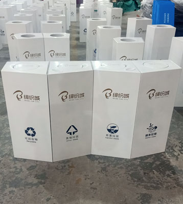 商場(chǎng)果皮垃圾箱核心部件可模壓成型不脫焊不易破損堅(jiān)固耐用。全桶身不銹鋼制作的果皮箱垃圾箱還具有防火功能,焊點(diǎn)平整打磨光滑無利口,不銹鋼白色高溫噴塑工藝,塑粉附著力強(qiáng)大大延緩銹蝕時(shí)間。可2個(gè)單桶可回收物、其他垃圾組合擺放成兩分類果皮垃圾箱,也可4個(gè)組成可回收物、其他垃圾、有害垃圾、易腐垃圾四分類果皮垃圾箱。桶頭可根據(jù)需求做簡(jiǎn)易直投口或搖擺蓋密封投口,它是商場(chǎng)果皮垃圾收集容器,白色烤漆造型高檔美觀搭配協(xié)調(diào)融入商場(chǎng)景觀環(huán)境。