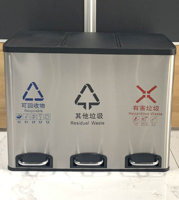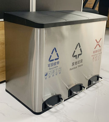 使用范圍:不銹鋼室內三分類腳踏垃圾箱廣泛應用于家庭、高檔寫字樓、商場、購物中心、酒店等室內場所垃圾分類收集使用。