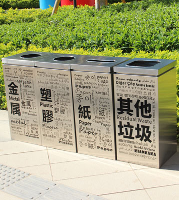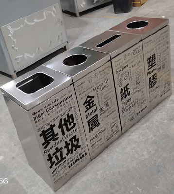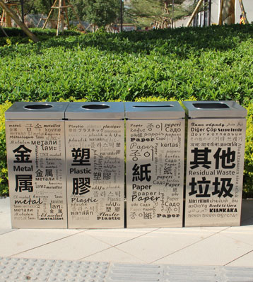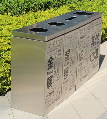 使用范圍:多文字組合分類垃圾箱應用于商業寫字樓、購物中心、售樓部、企業學校等室內果皮垃圾分類投放使用。