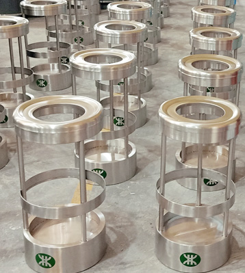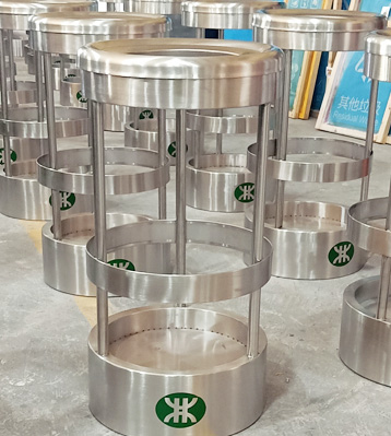 地鐵不銹鋼圓形防爆果皮箱核心部件模壓成型不脫焊不易破損堅固耐用。單桶外觀圓形設計,3根實心不銹鋼立柱等分與桶頭底座焊接成型,中間圓形包邊加固,無內桶,活動桶蓋直接套透明塑料垃圾袋收運便捷,垃圾存放情況一目了然。制作工藝精良打磨光滑無利口不割手。底座配重不易傾倒,通過透明垃圾袋可以看見垃圾存放情況、是否存在違禁品及可疑物品能及時發現,反恐防范安全隱患!