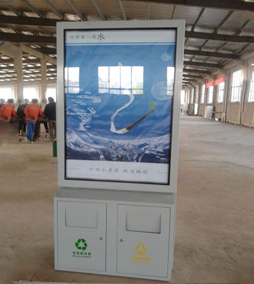 鋼制廣告垃圾桶的型號規格:GG4,900*400*2000mm,隨著城市美化與亮化的推進,垃圾箱將會在城市的發展中擔當重要角色,作為一與百姓生活密切相關的載體,在垃圾桶上刊登廣告將能夠有效吸引消費者的眼球,產生非常好的廣告效果,對于樹立公司良好形象以及提高公司知名度,并提高廣告招商力度具有深遠的意義。廣告垃圾桶燈箱具有、投入成本低,直接受眾效果好。 相比較其他形式的廣告而言垃圾桶廣告的成本相當低而且是直接面向廣告受眾,貼進消費者,形成高覆蓋網絡規模廣告效應。比起電視和報紙廣告來說有著無法擬比的優勢。