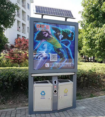社區廣告垃圾桶的型號規格:GG18,900*400*2000mm,隨著城市美化與亮化的推進,垃圾箱將會在城市的發展中擔當重要角色,作為一與百姓生活密切相關的載體,在垃圾桶上刊登廣告將能夠有效吸引消費者的眼球,產生非常好的廣告效果,對于樹立公司良好形象以及提高公司知名度,并提高廣告招商力度具有深遠的意義。廣告垃圾桶燈箱具有、投入成本低,直接受眾效果好。 相比較其他形式的廣告而言垃圾桶廣告的成本相當低而且是直接面向廣告受眾,貼進消費者,形成高覆蓋網絡規模廣告效應。比起電視和報紙廣告來說有著無法擬比的優勢。