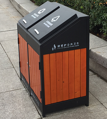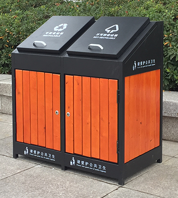 街道兩分類鋼木垃圾箱