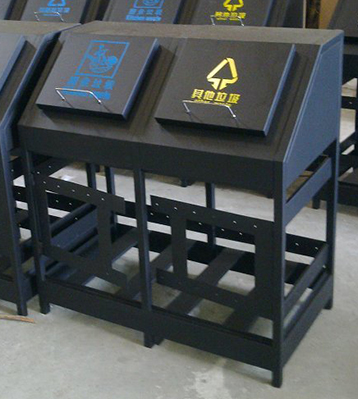 產品材質:欣方圳街道帶蓋分類鋼木垃圾箱采用現代化批量制作工藝