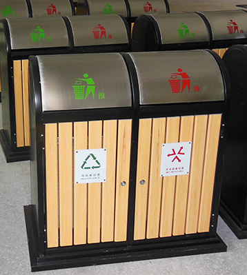 使用范圍:搖蓋式分類鋼木垃圾箱廣泛應用于公園、景區、小區、學校,等公共場所。