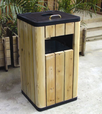 產(chǎn)品材質(zhì):欣方圳景點(diǎn)單投口鋼木垃圾桶采用現(xiàn)代化批量制作工藝