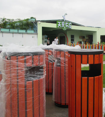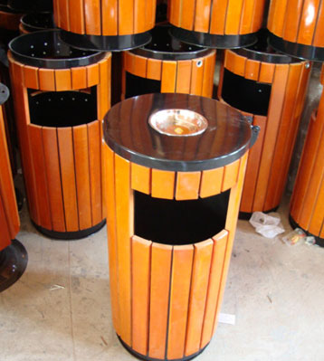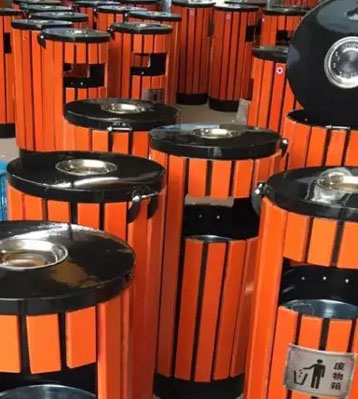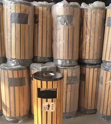 產品材質:欣方圳圓形單投口鋼木垃圾筒采用現代化批量制作工藝