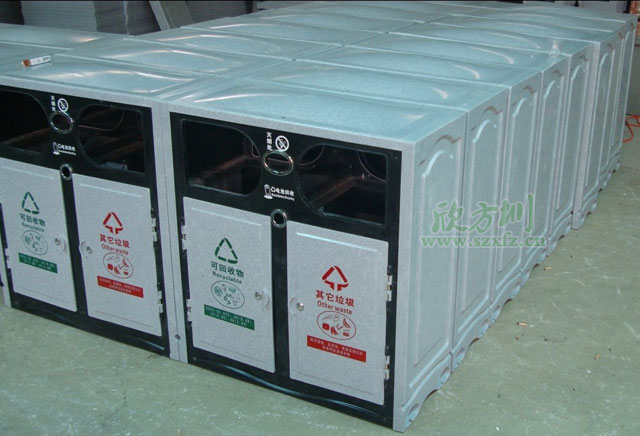 ? 欣方圳產(chǎn)品型號為A113玻璃鋼仿大理石垃圾桶的產(chǎn)品規(guī)格為:850*370*940mm,這批由我公司專門為海洋性氣候設(shè)置的垃圾桶,其材質(zhì)為:蓋、側(cè)板、門均采用(Bmc)高分子復(fù)合團狀模塑料高溫模壓成型。前板、后板、投放口、底板、內(nèi)桶均采用(SMC)高分子復(fù)合片狀模塑料高溫模壓成型,造型美觀;具有抗腐蝕、抗酸堿,防潮,抗紫外線在自然條件下能耐高低溫,沒有回收盜用價值,非常適合在沿海城市里投入使用。