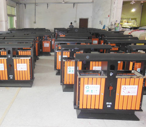 ? 2.鋼木垃圾桶工藝:鋼木果皮箱在完成鋼材支架和實木貼裝過后,還會采用先進噴塑技術,對表面進行防腐處理,同時還要經歷耐高溫測試,進一步提升鋼木果皮箱的品質.