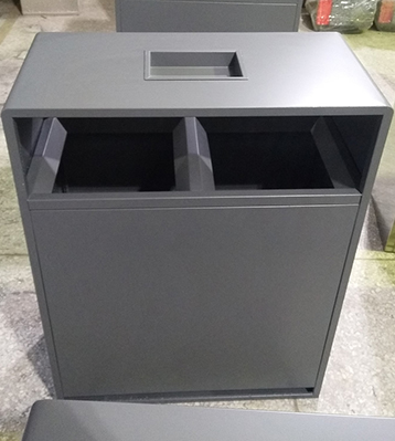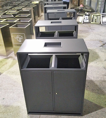 產(chǎn)品材質(zhì):戶外高檔兩分類鋼制垃圾箱采用現(xiàn)代化批量制作工藝,選用優(yōu)質(zhì)冷軋鋼板,核心部件模壓成型不脫焊不易破損堅(jiān)固耐用。表面經(jīng)過除油、噴砂防銹處理后,再進(jìn)行酸洗磷化處理,鋼制桶表面清理后整體進(jìn)行靜電噴涂或烤漆處理,靜電噴涂是經(jīng)過流水線高溫固化爐固化后再出爐冷卻,漆面色澤耐久,防腐防銹。