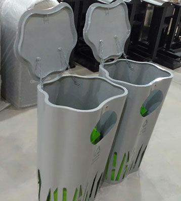 產品材質:異形戶外定制果皮箱采用現(xiàn)代化批量制作工藝,選用優(yōu)質冷軋鋼板,核心部件模壓成型不脫焊不易破損堅固耐用。表面經過除油、噴砂防銹處理后,再進行酸洗磷化處理,鋼制桶表面清理后整體進行靜電噴涂或烤漆處理,靜電噴涂是經過流水線高溫固化爐固化后再出爐冷卻,漆面色澤耐久,防腐防銹。
