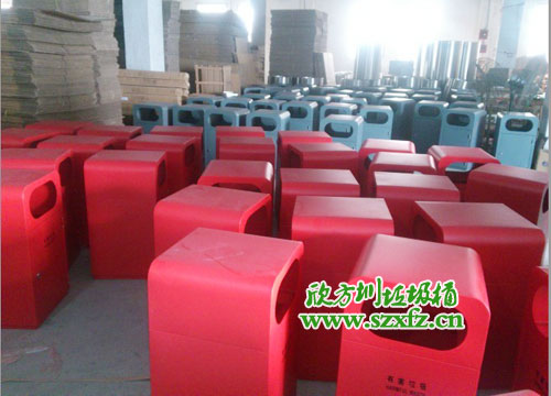 ? 這批不銹鋼垃圾桶的規(guī)格是400*400*730mm,按照客戶的要求制作成三種顏色,并絲印不同的垃圾回收標識:45個藍色的印可回收垃圾的中英文字樣,47個灰色的印其他垃圾的中英文字樣,34個紅色的則印有害垃圾的中英文字樣。成品的造型十分精致漂亮,亮眼的顏色也是一道美麗的風(fēng)景線。