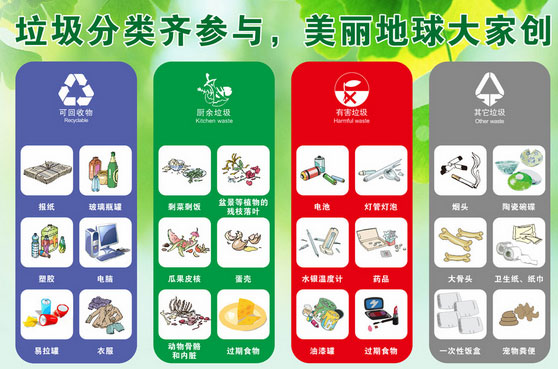 ? 廢紙主要包括報紙、雜志、圖書、各種包裝紙、辦公用紙、紙盒等,但是紙巾和衛生用紙由于水溶性太強不可回收;塑料主要包括各種塑料袋、塑料包裝物、一次性塑料餐盒和餐具、牙刷、杯子、礦泉水瓶等;玻璃主要包括各種玻璃瓶、碎玻璃片、鏡子、燈泡等;金屬主要包括易拉罐、罐頭盒等;織物主要包括廢棄衣服、毛巾、書包、鞋等。